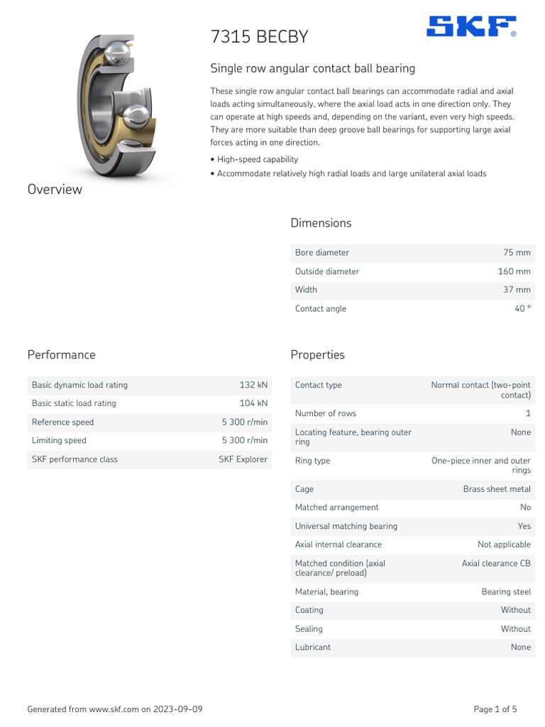 SKF 7315 BECBY Specification PDF License Bearing (Mechanical)